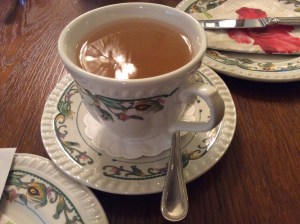Bij binnenkomst word je ontvangen door een van de eigenaren die je na een van de gezellige tafeltjes brengt. Binnen de kortste keren staat er een enorme theepot op tafel met daarin verse thee (bladeren). Wij hadden vooraf doorgegeven een kruidenthee te willen en daarin hebben ze genoeg keuze. Ook hadden wij andere dieetwensen doorgegeven en daar hadden ze goed rekening mee gehouden.
