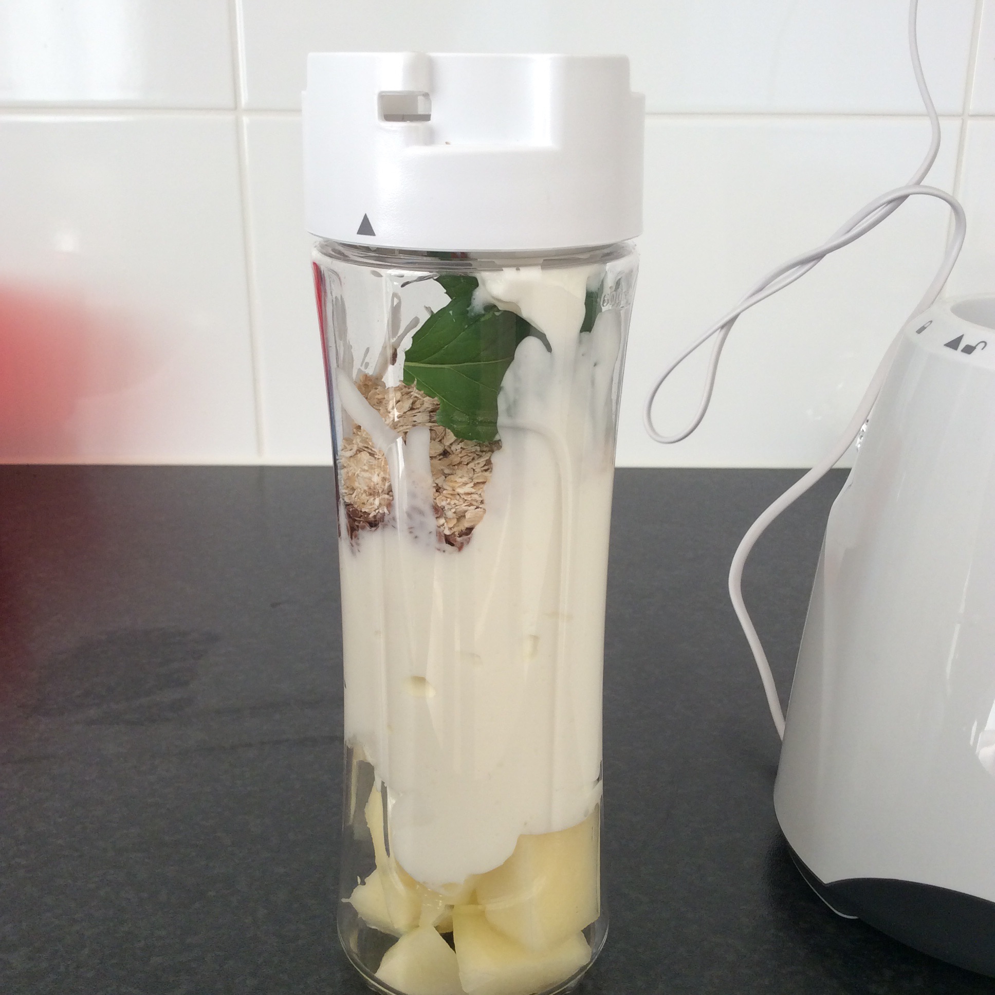 Doe alles in de smoothiemaker et voìla. Drink smakelijk!