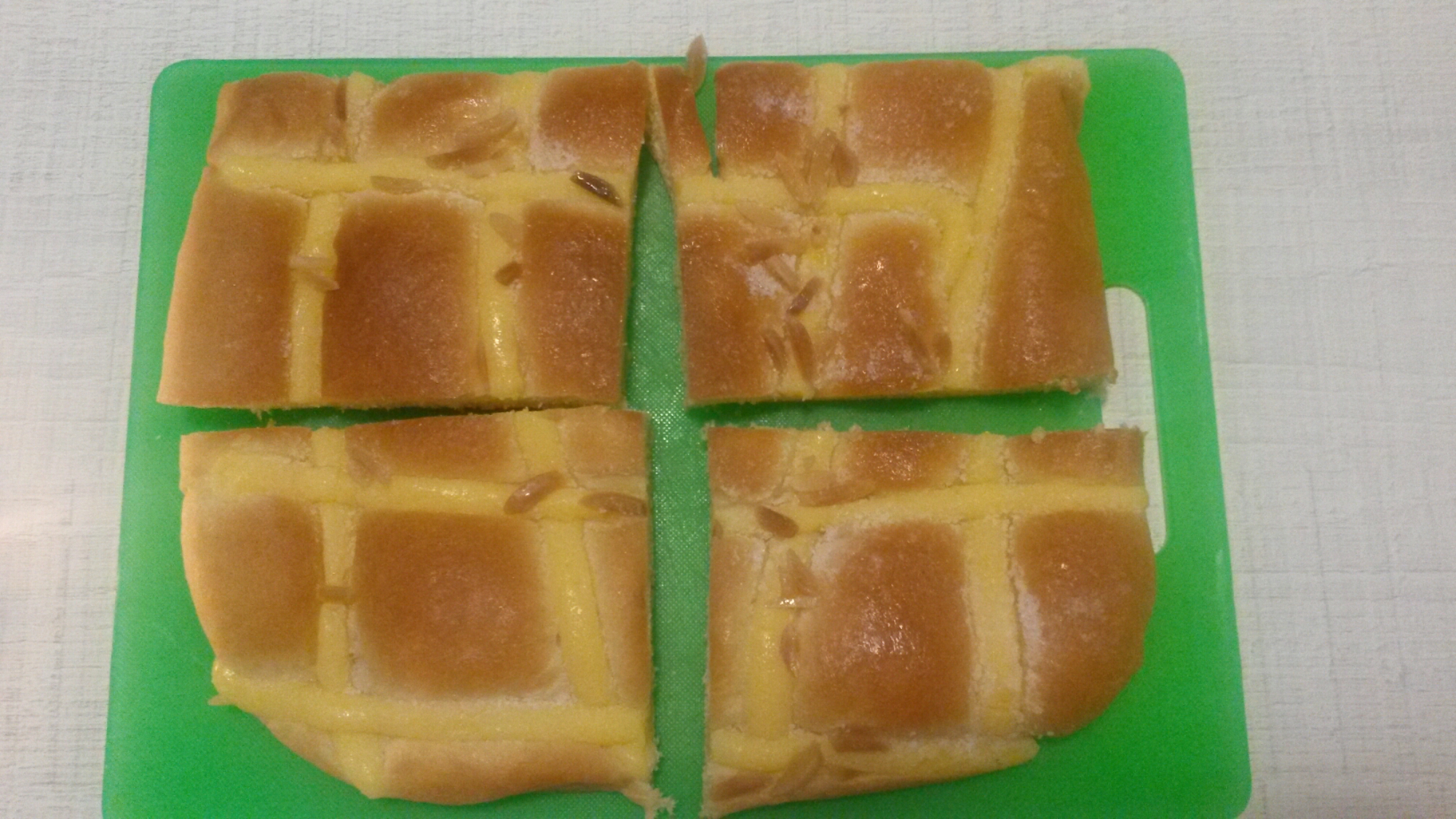 In de nacht van 23 juni op 24 juni wordt San Juan gevierd. Daarbij worden de traditionele cocas de San Juan gegeten en heel veel vuurwerk afgestoken. De meeste zijn gemaakt van bladerdeeg, maar gelukkig zijn er ook varianten zonder bladerdeeg. Deze had wel wat weg van melkbrood. Hmmm.