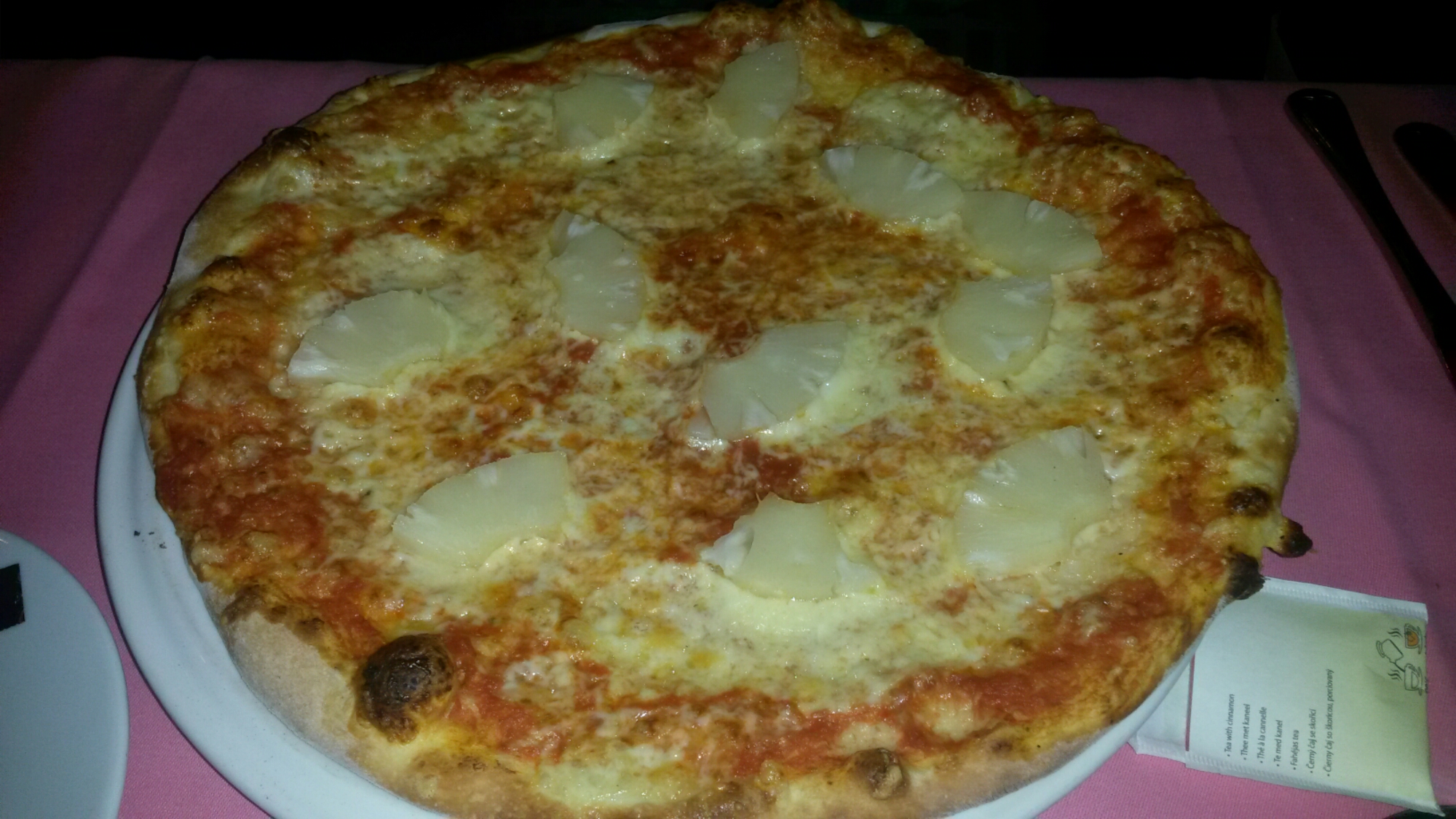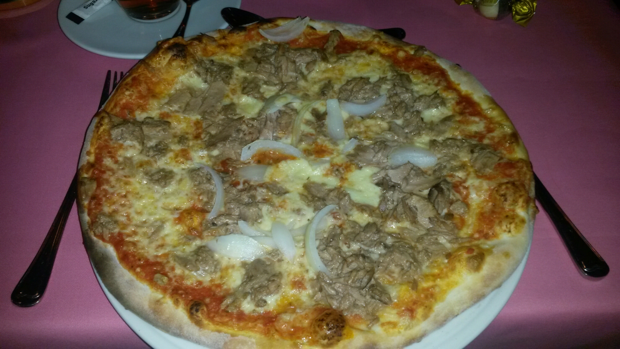 Mijn zus en ik kozen allebei voor een pizza. Ik gaf aan dat ik de pizzabodem graag extra dun wilde en daar hielden ze ook rekening mee. Ik koos de pizza tonno en mijn zus koos voor de pizza fantasia zonder ham. Aangezien we er op een woensdagavond waren en er maar een paar stellen in het restaurant waren, kregen we onze pizza´s echt heel snel.