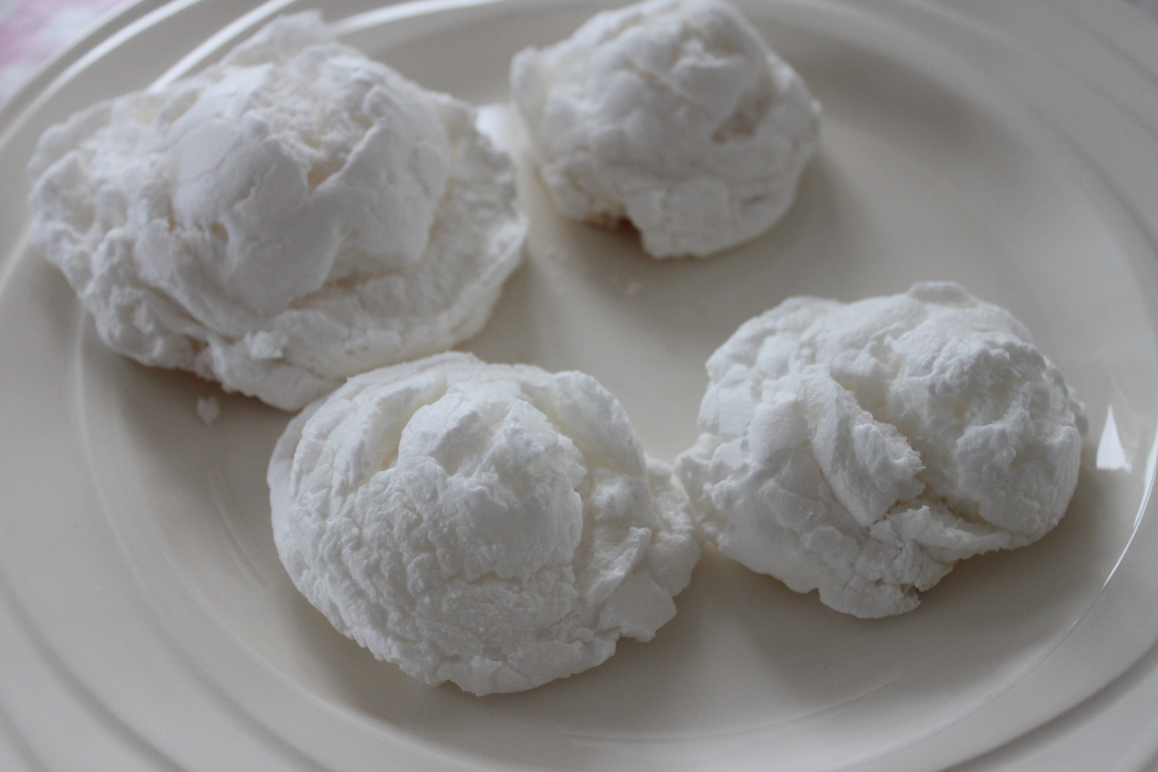 Ik maakte de meringues volgens de snelle manier in de magnetron, omdat ik nergens in de winkel meringues kon vinden.
