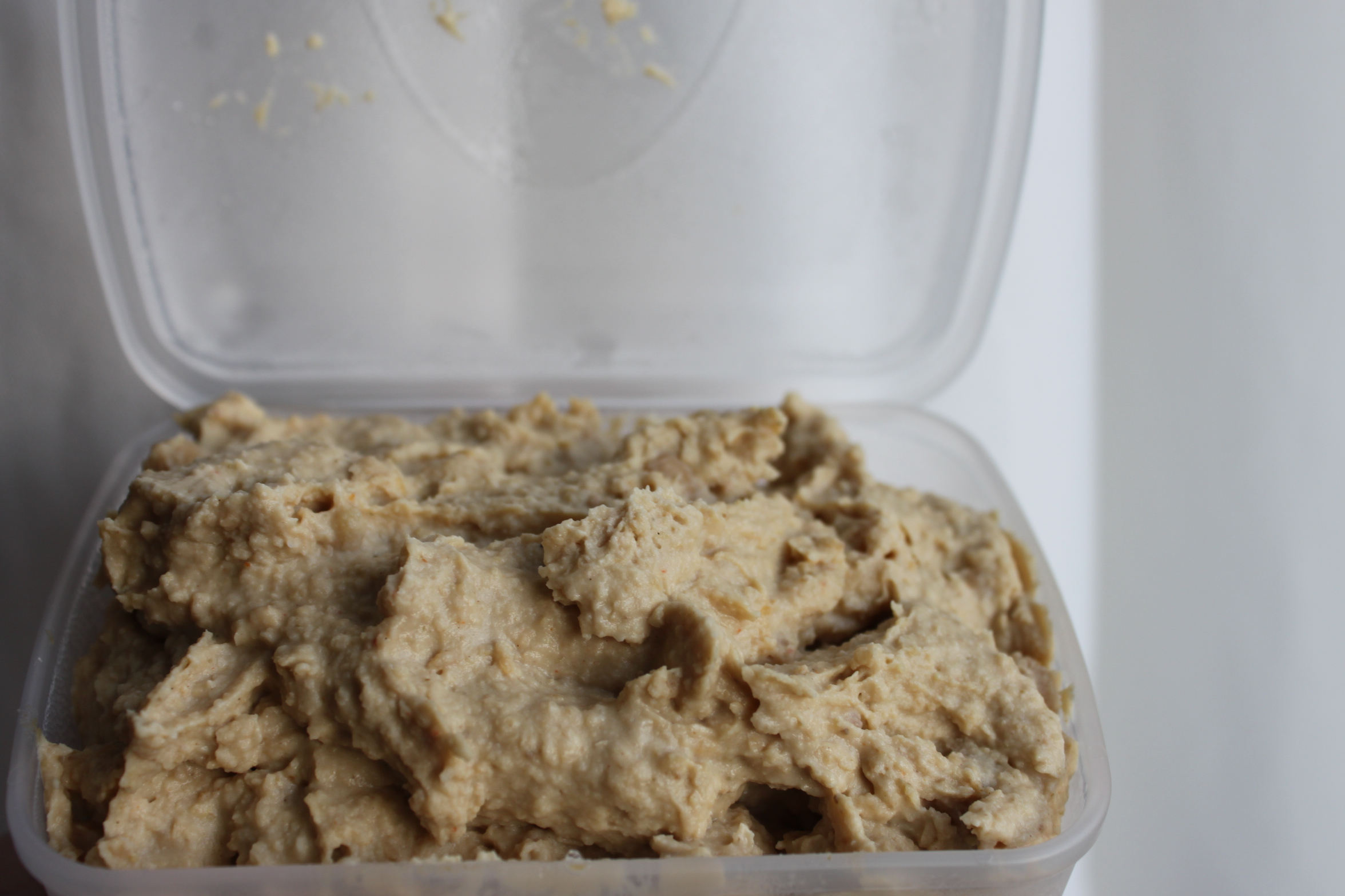 Maar je kunt de knoflook net zo makkelijk weglaten en dat geldt ook voor de citroen. (Die mag ik namelijk niet eten). Dus maakte ik onlangs deze hummus zonder knoflook (en citroen). De foto´s zijn niet heel mooi, want ik maakte het snel ´s ochtends vroeg om mee te nemen naar mijn werk. Maar ik garandeer je dat het lekker is.