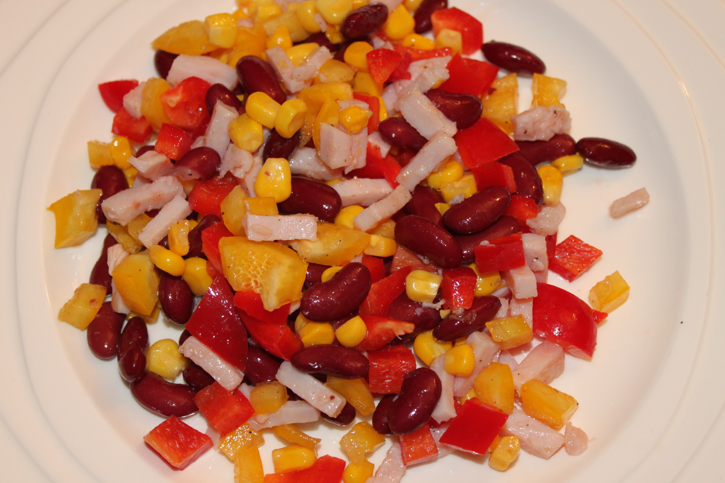 Nee, deze bonte bonensalade is absoluut geen culinair hoogstandje, maar beter dan een afhaalmaaltijd. Binnen minder dan tien minuten kun je aan tafel schuiven. Een perfect maaltijd voor als je na een lange dag op je werk, geen zin hebt om uitgebreid te koken en toch je vitamines binnen wilt krijgen. Ik maakte de salade af met olijfolie, zout en peper, maar je kunt je natuurlijk uitleven met een andere dressing.
