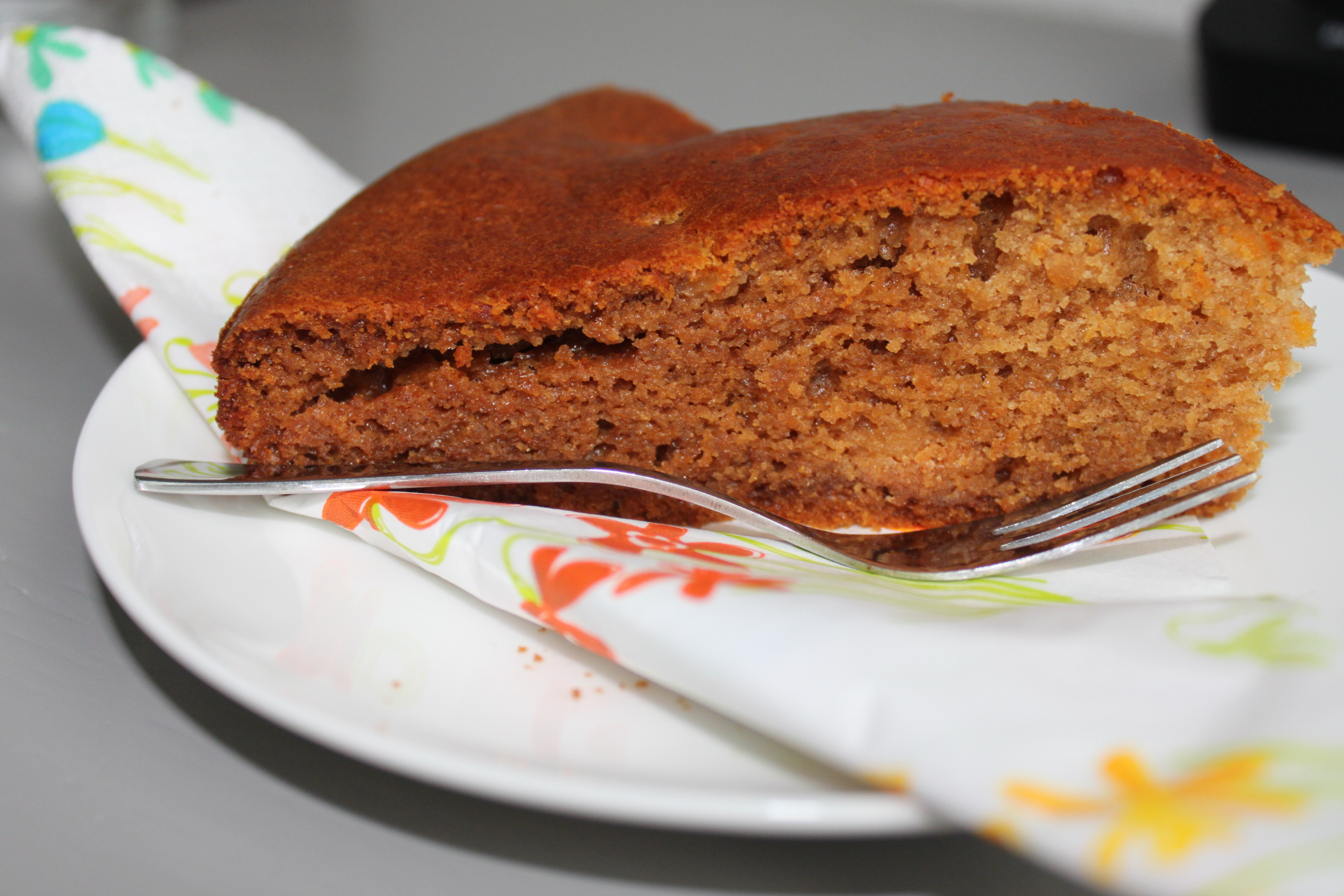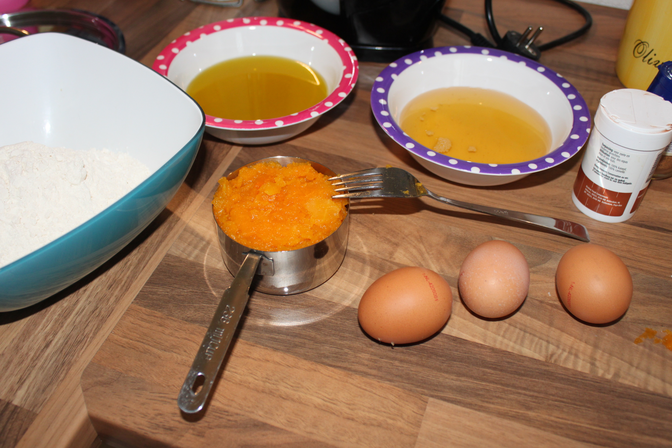 Mijn moeder had pas zo’n cake gemaakt maar toen had ze de pompoen in de pan laten zitten, heel knap. Gelukkig kwam ze er na tien minuutjes achter!