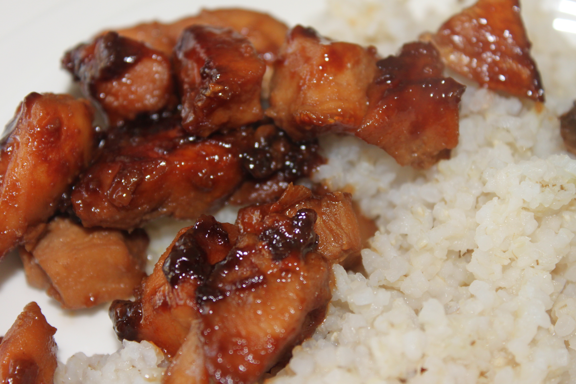 Nadat de smaken zijn ingetrokken verwarm je een koeken/wokpan en bak je de kip in de marinade op zacht vuur gaar. Het werkt het beste als je er een deksel op doet, zo wordt de kip niet droog en verlies je niet teveel saus. Serveer de kip bevoorbeeld met rijst en groente. Eet smakelijk!