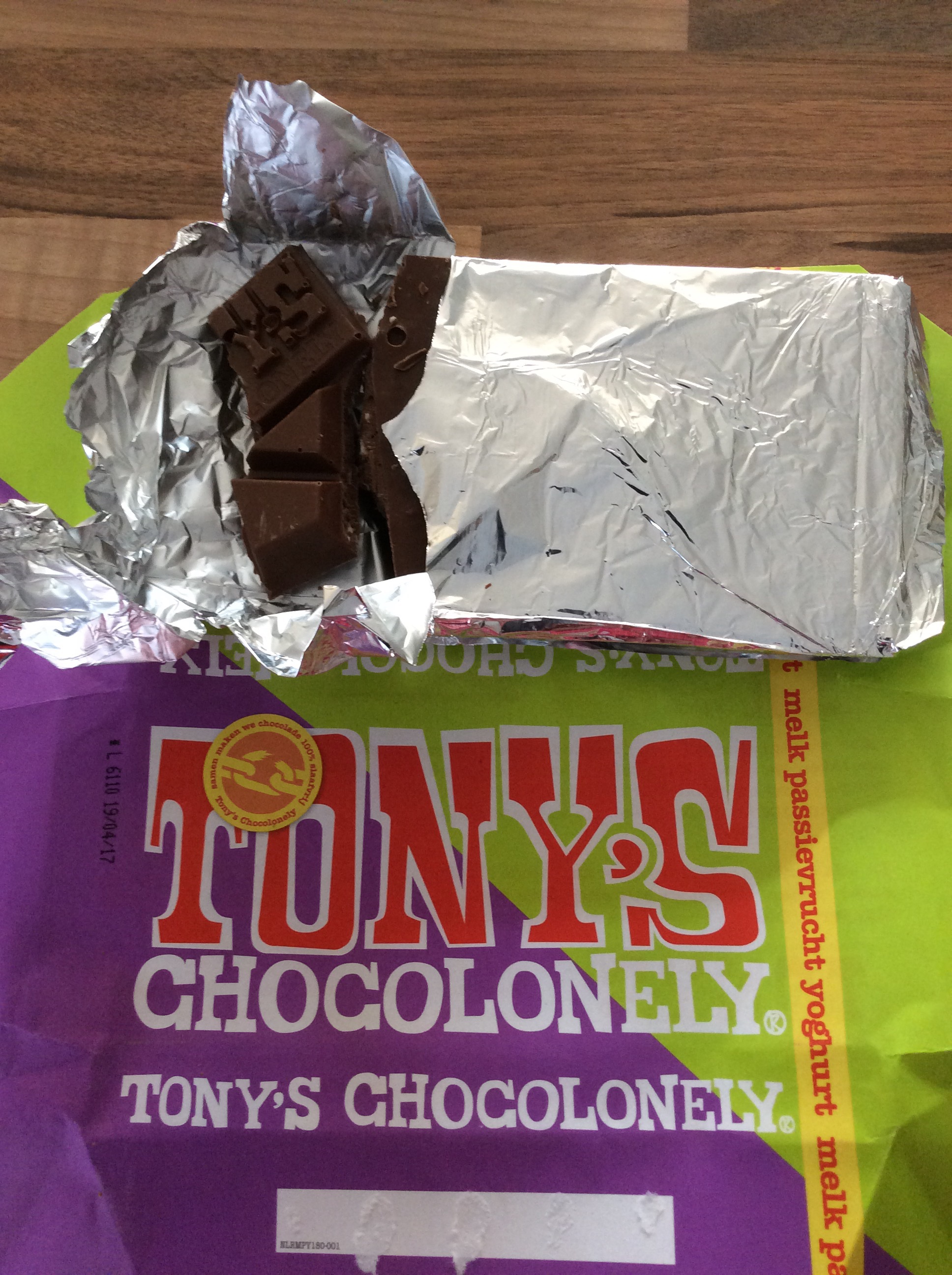 De nieuwe Tony Chocolonely reep was bij de AH te koop en ik kocht er gelijk twee. Een voor mezelf en een voor mijn ouders.