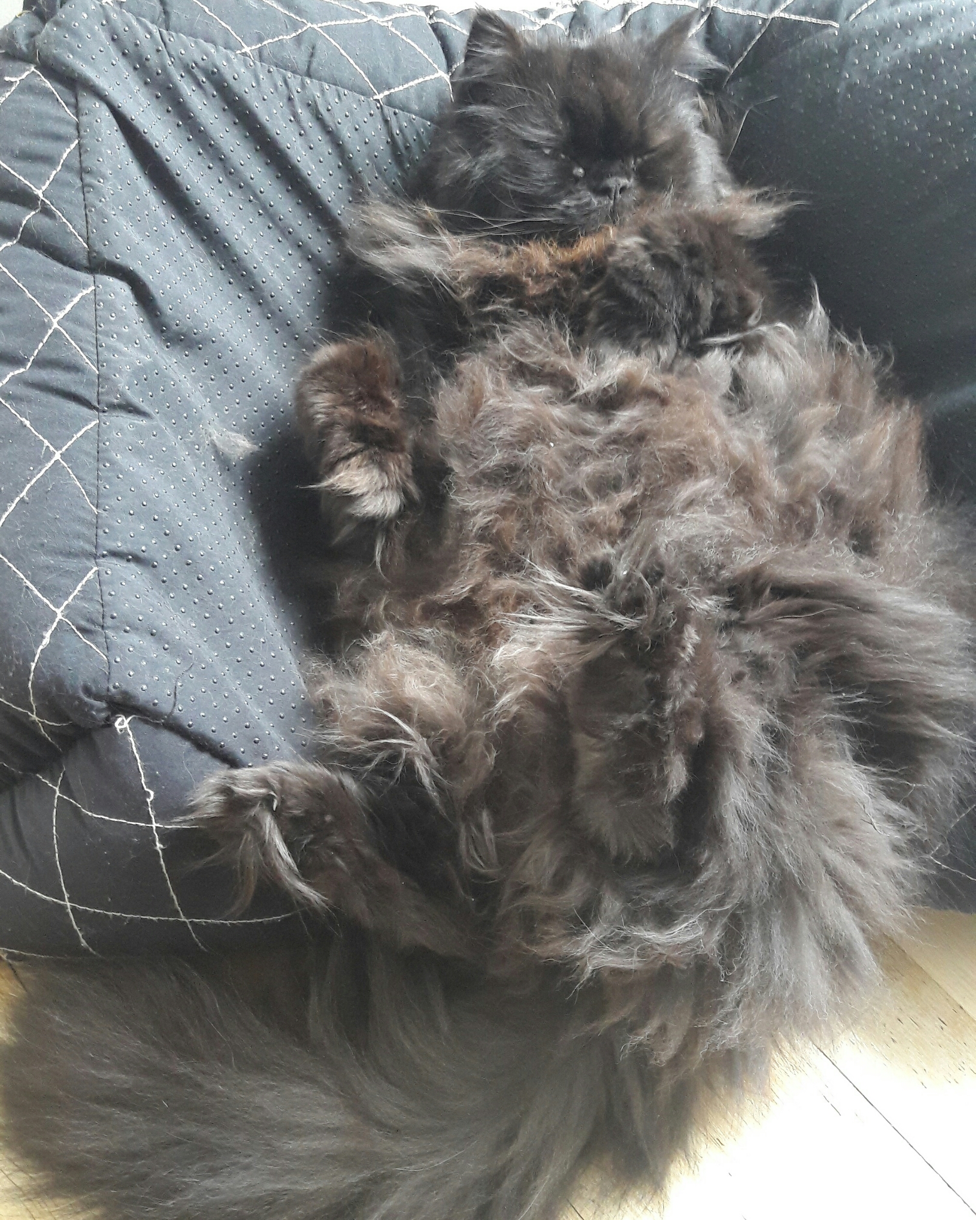Ik ging bij mijn ouders op visite en daar trof ik kater Chip in deze heerlijke relaxte houding aan. Chip woont samen met zijn broer Lucifer bij mijn ouders. Het zijn zulke lieve katten.