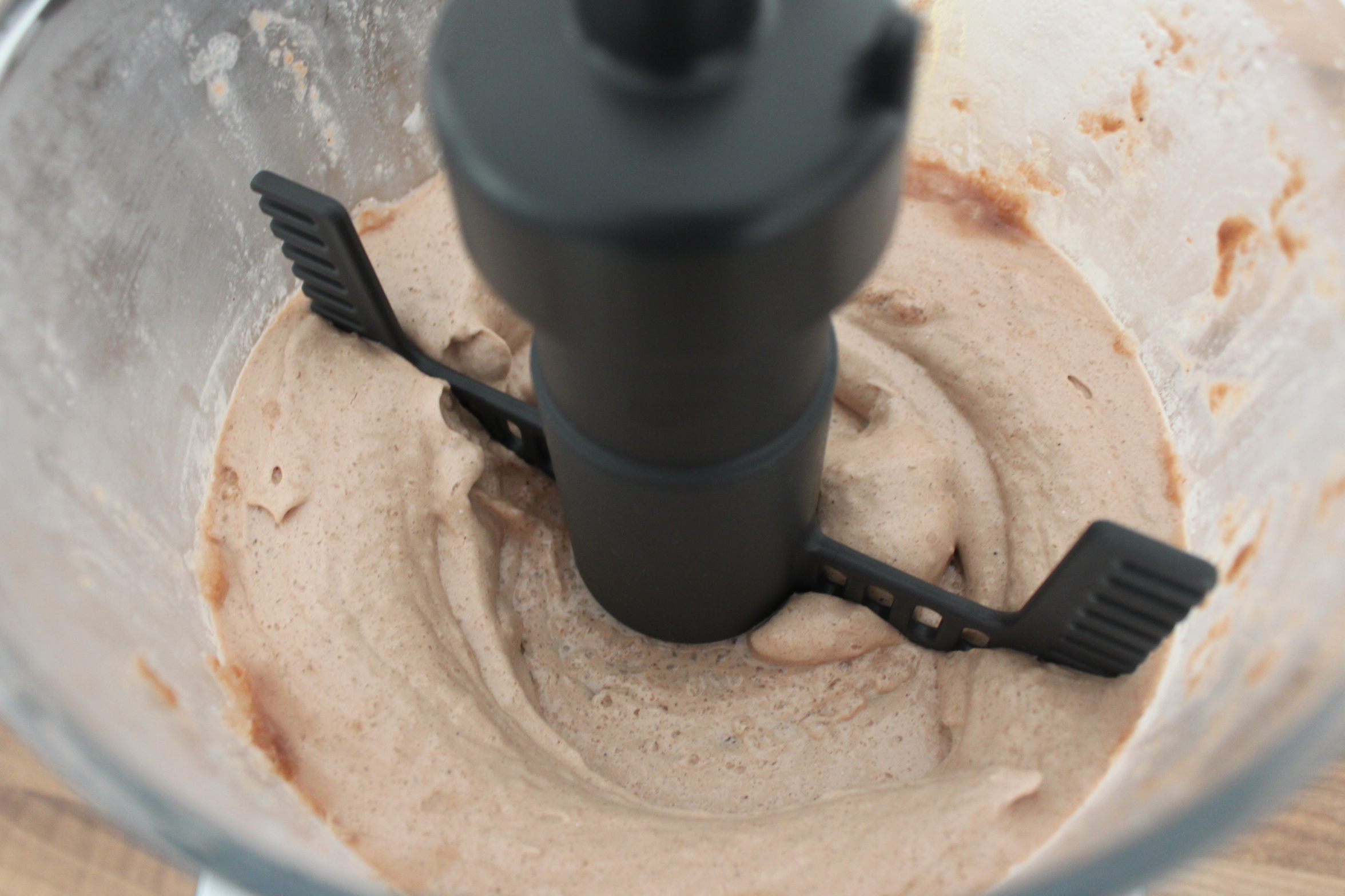 Je begint met het fijnmalen van de ijsblokjes in een sterke keukenmachine. Als dit gedaan is, voeg je het proteïne poeder toe. Laat de machine goed draaien zodat het ijs en het poeder goed gemengd is. (Schraap de zijkanten en deksel ook schoon.) Als alles goed gemengd is voeg je scheutje voor scheutje de melk toe. Het is goed als het mengsel romig is. Laat de machine dan even goed draaien, zodat alles weer goed mengt. Zet de machine uit en vervang de hakmessen voor het opklopstuk of gebruik een handmixer. Klop het geheel in ongeveer 4 minuten op. Je zult zien dat de fluff verdriedubbeld is. Schep de fluff in een kom en maak af met bijvoorbeeld cacao nibbs.