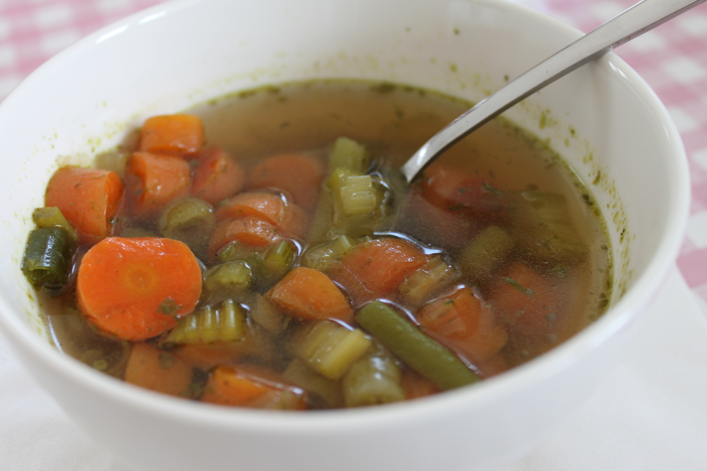 Vandaag lekker makkelijk. Wat dacht je van soep met brood? Hier vind je het recept voor een simpele groentesoep.
