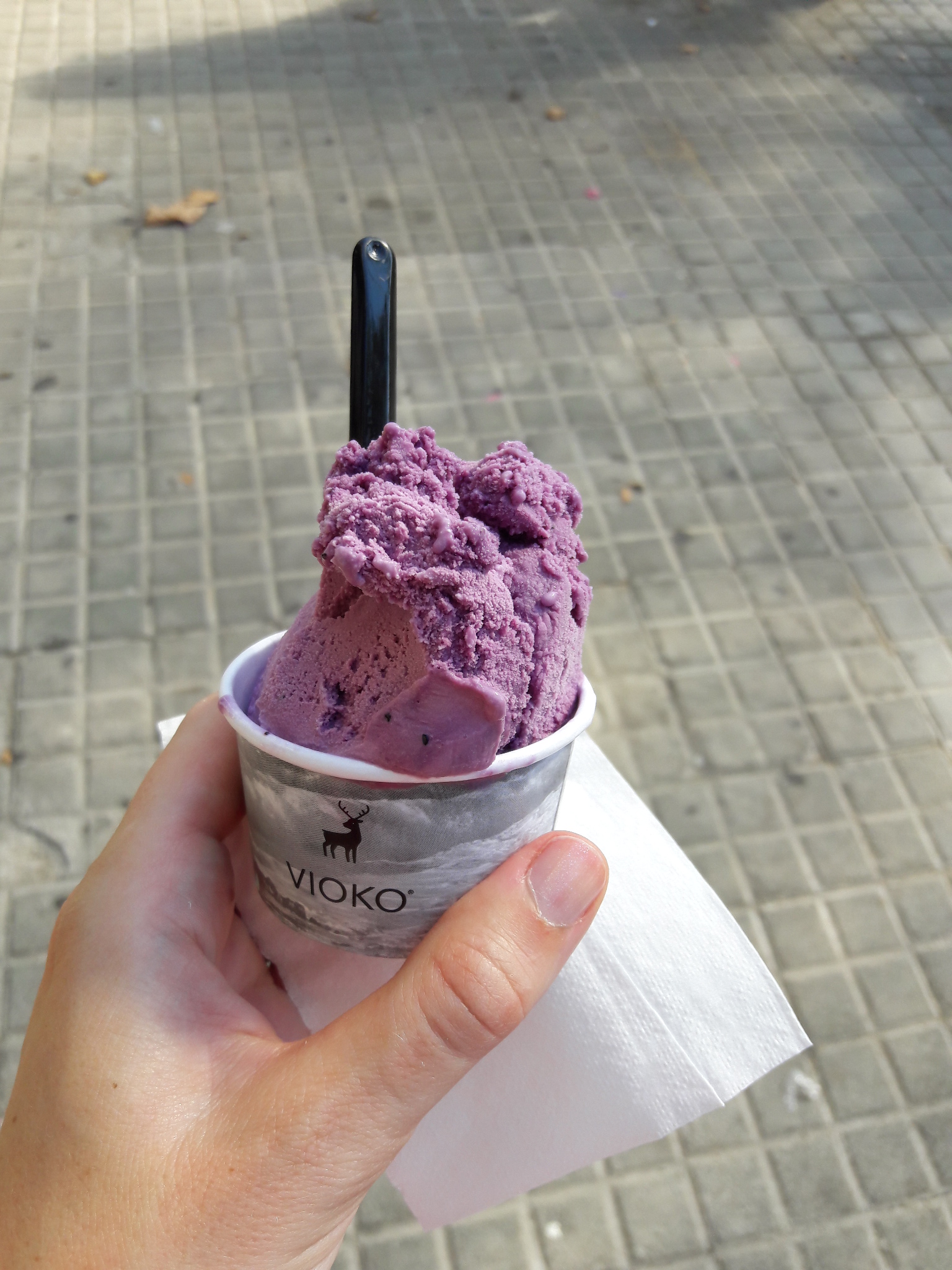 Ik at ook nog een ijsje bij Vioko in Barceloneta. Ik koos voor de smaak bosbessen met viooltjes.