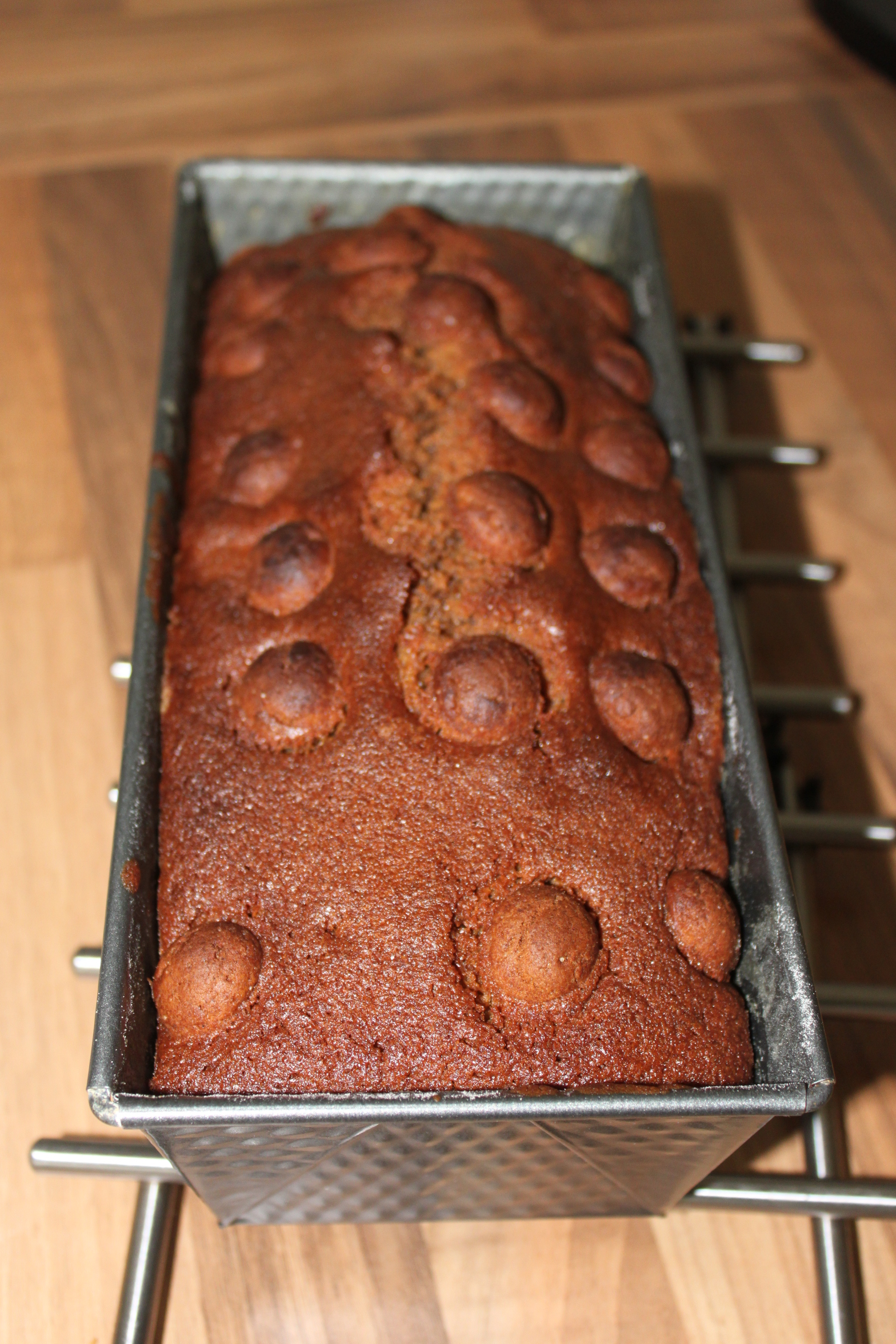 Vet een cakeblik goed uit en bestuif met bloem. Stort het beslag in de cakevorm en bak de cake in 60 minuten af. Houd wel even goed in de gaten dat de kruidnoten bovenop niet zwart worden. Dek eventueel af met aluminiumfolie.