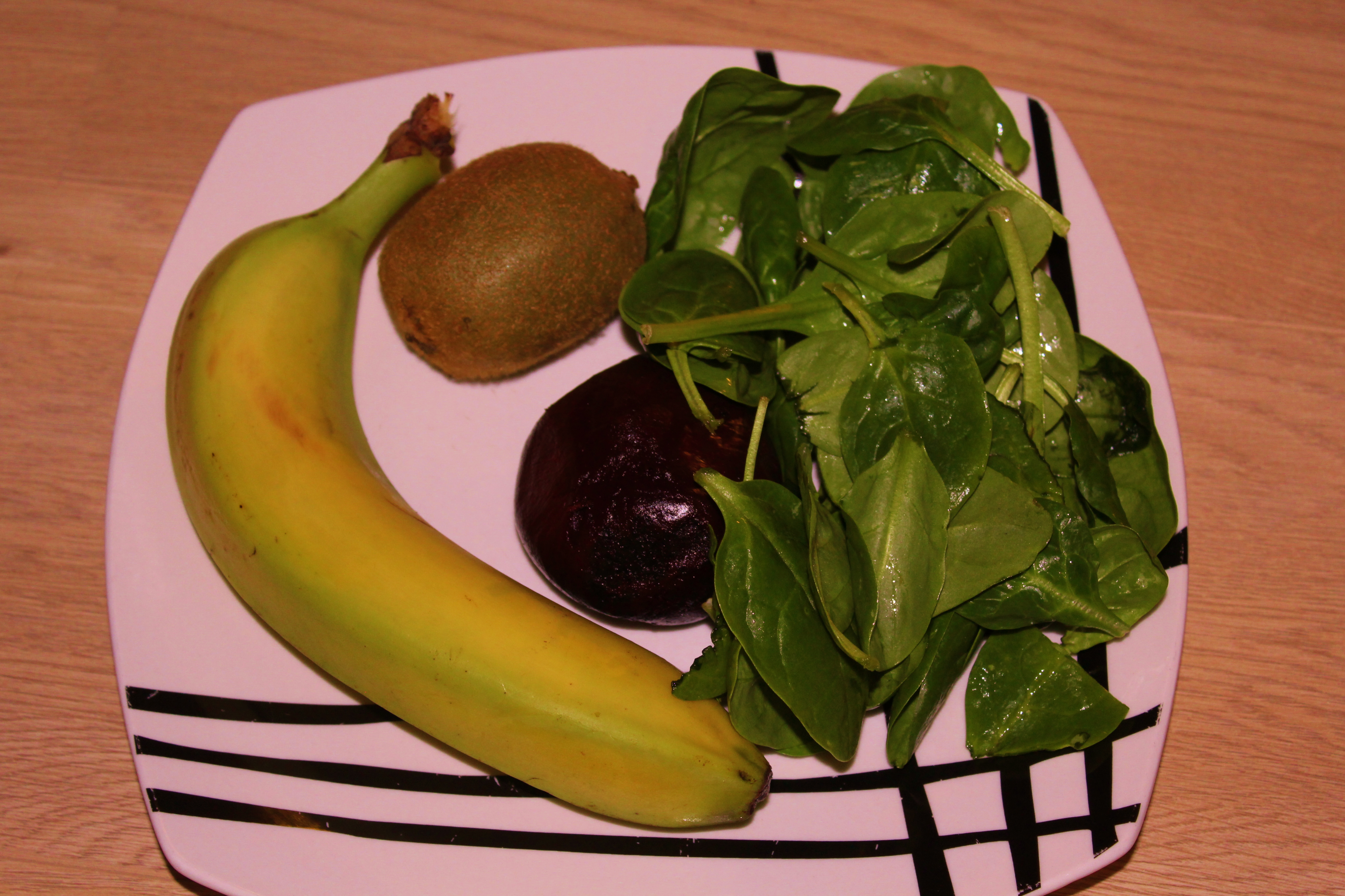 Snij de rode biet, de banaan en de kiwi in stukjes en doe deze in de smoothie maker of blender. Doe de spinazie erbij en water ( niet te weinig want dan wordt het een te dikke substantie). Ik doe zelf meestal de helft van de drinkbeker aan water erin. 2 minuten blenden en klaar is je ontbijt! Ik hou het met deze smoothie vol tot aan de lunch.