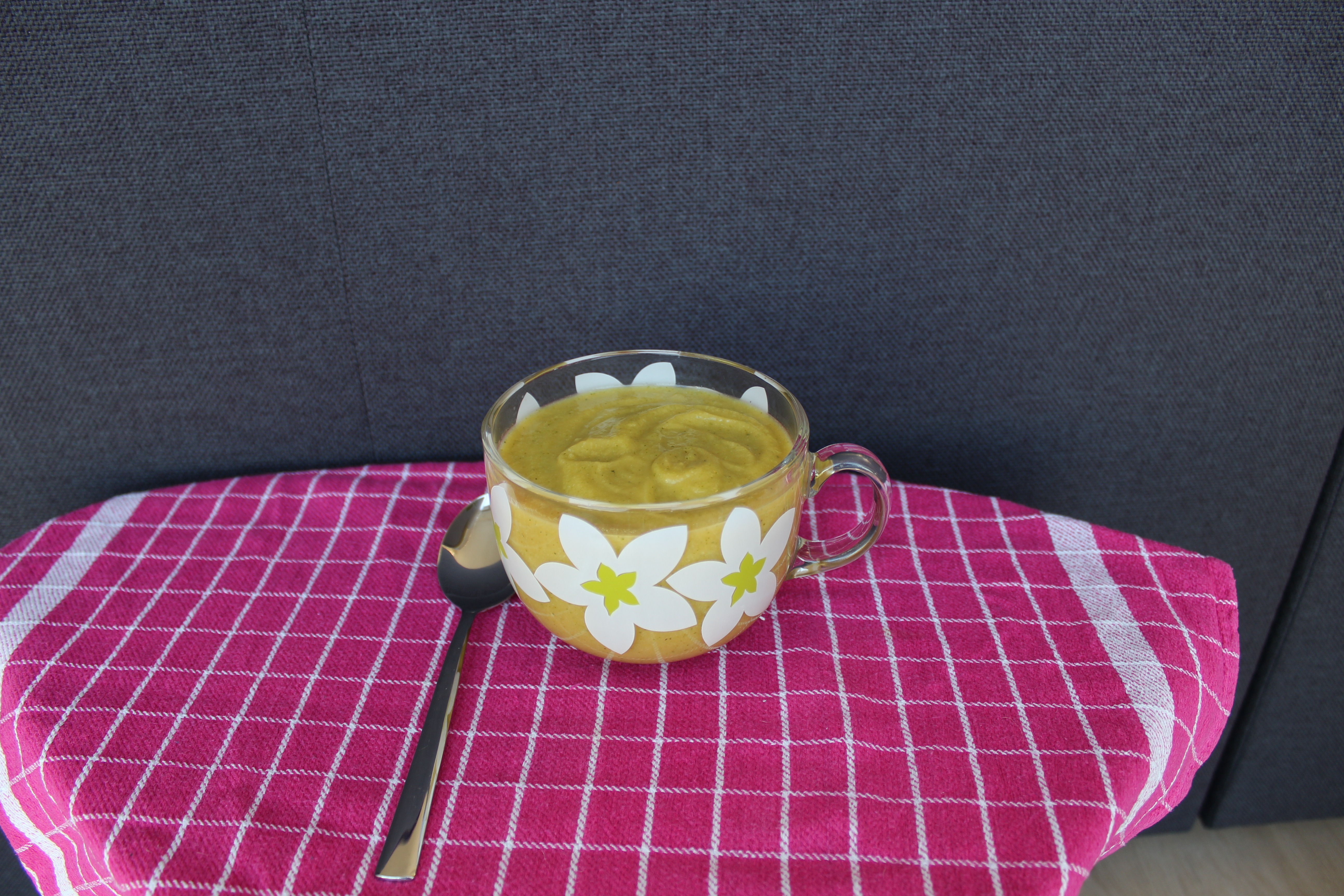 Ik maakte er een pittige broccolisoep van met bloemkool en zoete aardappel.