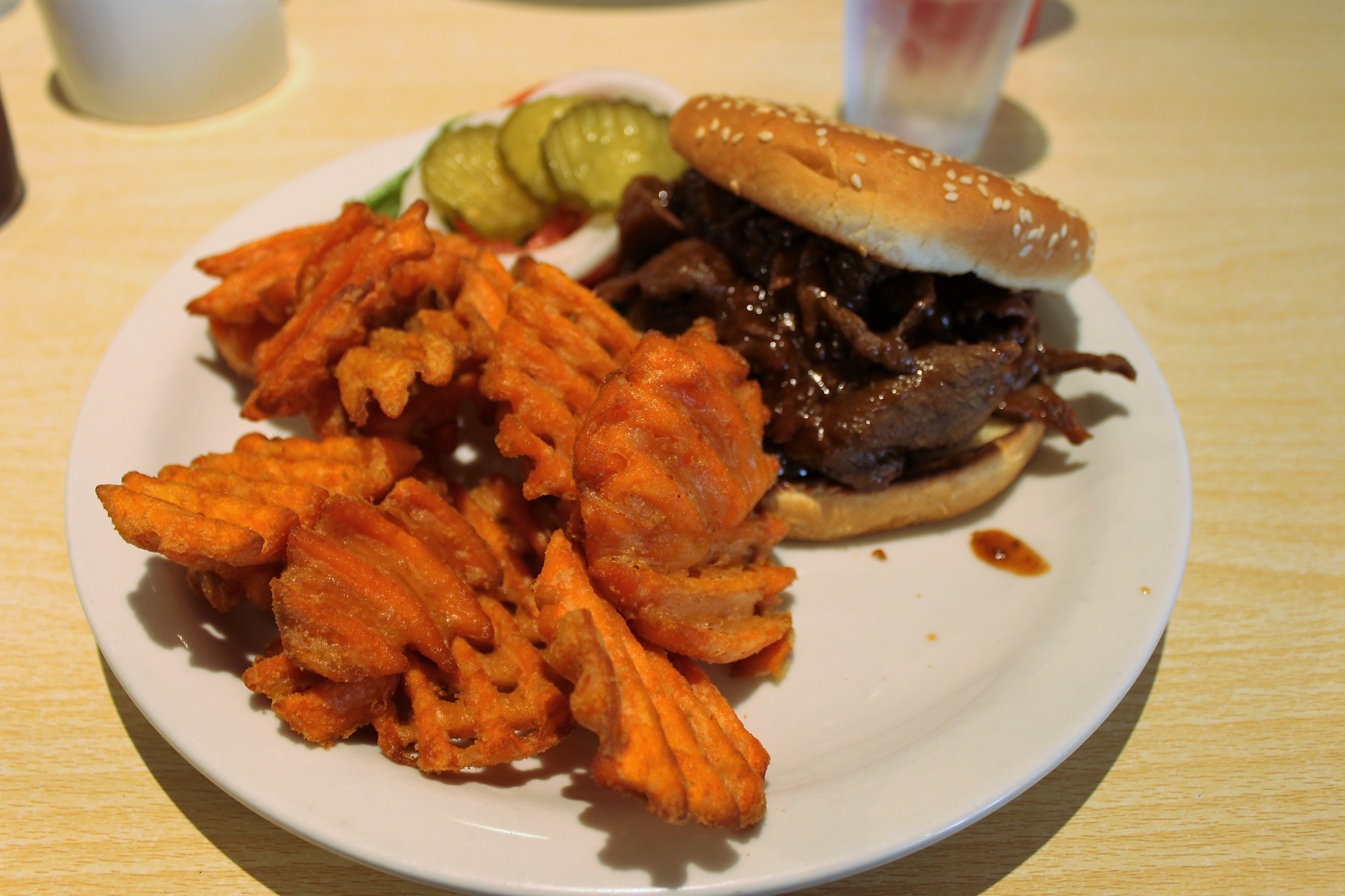 Hoe vaak we wel niet voorbij een Denny’s zijn gereden, voordat we eindelijk besloten daar iets te gaan eten. Denny’s is een keten die 24 uur per dag ontbijt serveert, dus besloten wij pancakes als lunch te nemen.