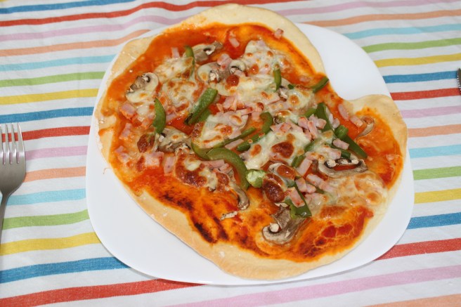 Op vrijdag eten we pizza. Ik heb een vrije dag en dus genoeg tijd om pizza’s te maken. Het recept vind je hier.
