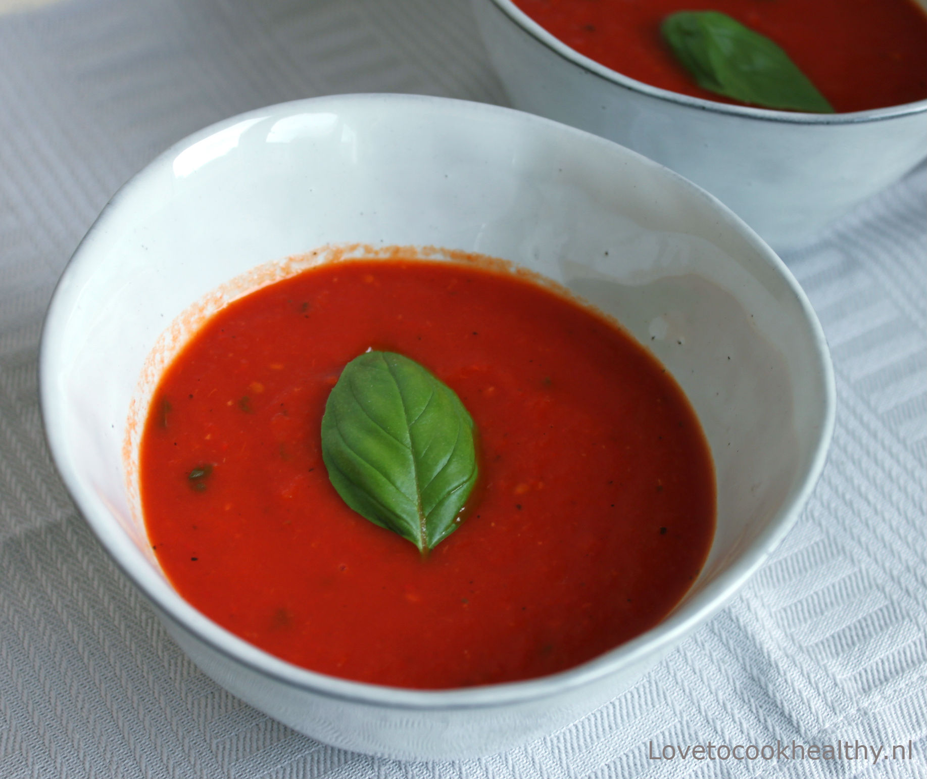 Er staan al heel wat soepen op Lovetocookhealthy, waaronder een tomatensoep. Ik vond het echter tijd worden om hiermee te variëren en maakte deze heerlijke tomatensoep met geroosterde paprika voor extra smaak.