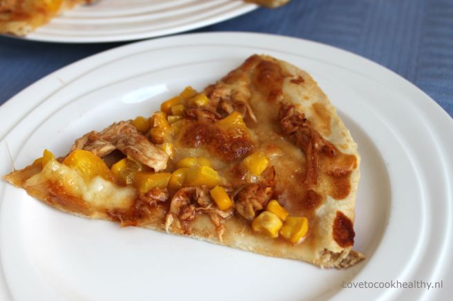 Verwarm de oven voor op 200 graden en stel in op 16 minuten. Rol het deeg dun uit op een met bakpapier beklede pizzaplaat, prik gaatjes in de bodem en besmeer met de twee eetlepels barbecuesaus. Verdeel nu de kip, maïs, paprika en mozzarella over de pizza en bak deze in 16 minuten af. Zet de laatste minuten de gril nog even aan. Eet smakelijk!