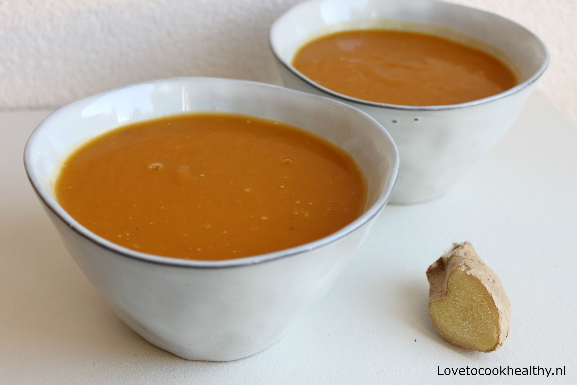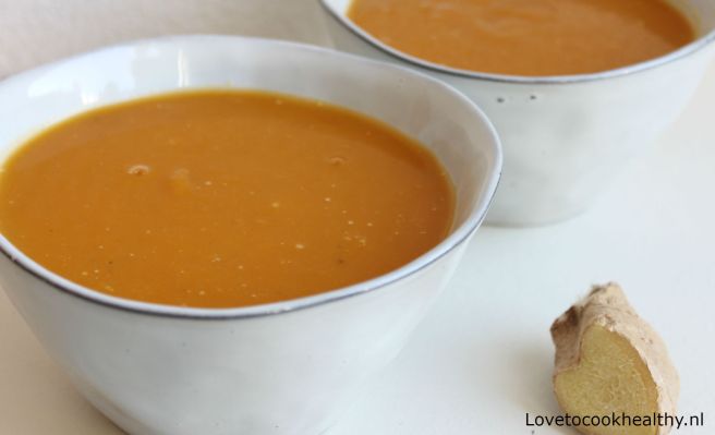 Er staan al een aantal pompoensoepen op de site en deze soep zal je opnieuw verrassen. De gember en komijn geven wat extra pit en smaak en de zoete aardappel zorgt voor wat extra body. Lekker, vullend en gezond! Wat wil je nog meer?