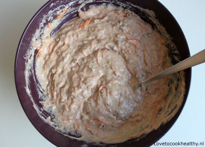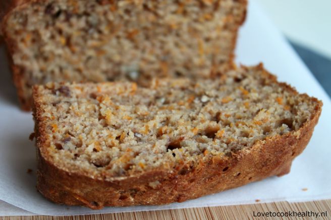 Wil je toch een iets ongezondere carrot cake bananenbrood, dan kun je natuurlijk altijd nog een lekkere laag cream cheese over de bovenkant van de carrot cake smeren.