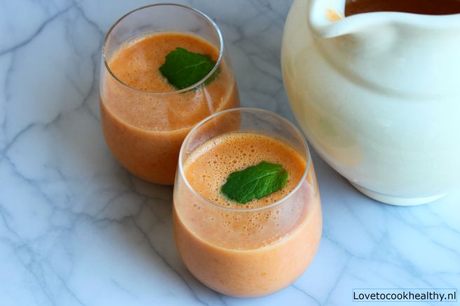 Ik besloot een gazpacho van fruit te maken en net als gewone gazpacho serveer je deze gazpacho van abrikozen lekker koud. Het is het perfecte dessert. Fruitig, fris en zoet en daarnaast nog eens makkelijk te maken ook!