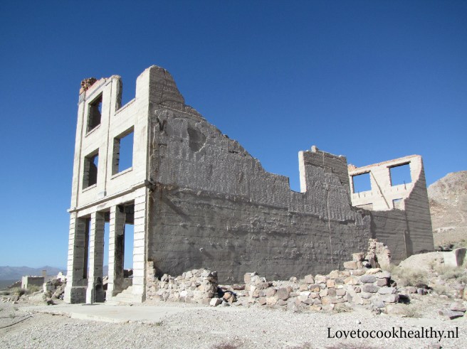 We ontbijten bij Denny’s en rijden daarna naar het spookstadje Rhyolite. Hier maken we veel foto’s en vergeten we de tijd een beetje. We rijden snel door naar Death Valley, bekijken Zabriskie point, doen de Artist drive en lopen een stuk over Badwater. Onderweg naar Las Vegas, lunchen we bij een motor café en leveren vervolgens een uur te laat de auto in. Als we op de bon kijken zien we dat we een dag extra moeten betalen. We lopen naar iemand van Alamo en met een paar muisklikken is het bedrag verdwenen. We nemen de taxi naar het Excalibur en krijgen ondertussen wat toeristische informatie van de chauffeur.