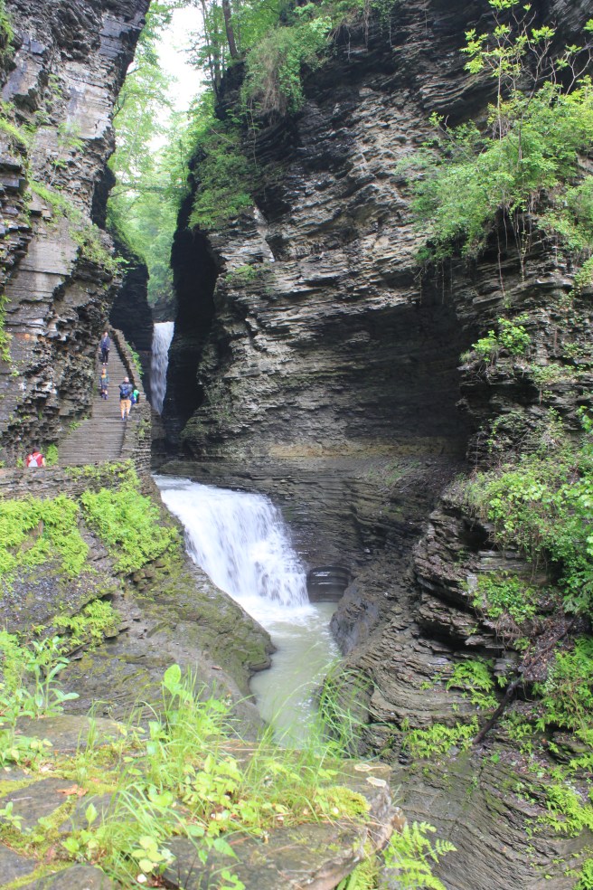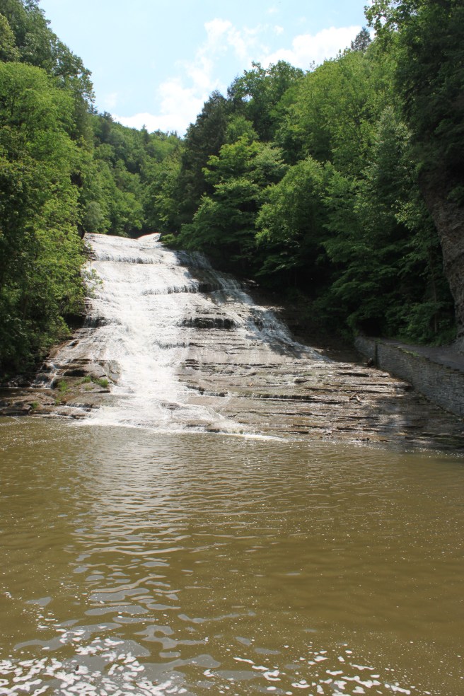 Na het ontbijt gaan we op weg naar Watkins Glen. Onderweg rijden we langs Buttermilk Fall Statepark en hier mogen we gratis naar binnen. We lopen het pad langs de waterval omhoog en blijven nog een tijdje op een bankje genieten van het uitzicht. We hebben broodjes en kaas gekocht en eten dat ondertussen op. Na een tijdje besluiten we door te rijden naar Watkins Glen. We rijden langs Newfield en hier bezoeken we een covered bridge uit 1853. We rijden er overheen met de auto en ook weer terug, want dat kan bij vrijwel geen een brug, dus ja we benutten nu de mogelijkheid 😉