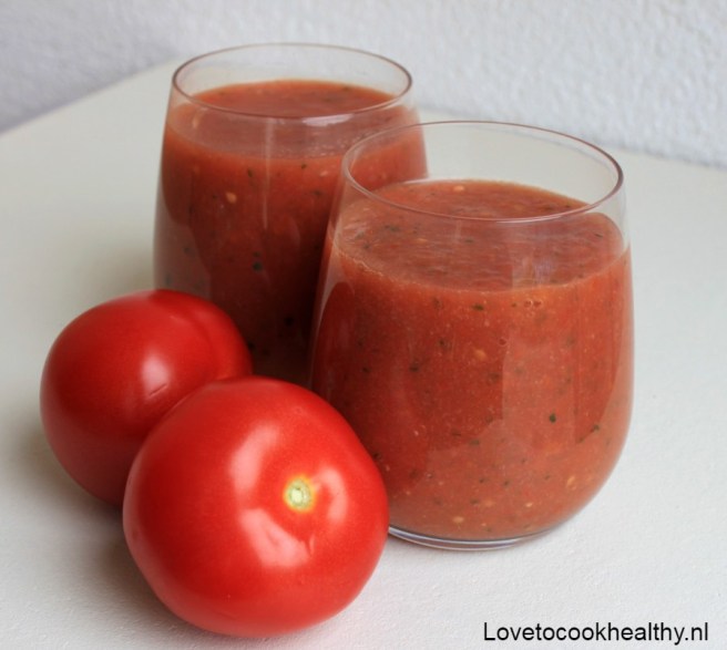 Twee jaar geleden maakte ik een gazpacho van abrikozen, omdat ik toen geen tomaten kon eten. Na mijn zwangerschap lijkt mijn lichaam te zijn gereset, waardoor ik wel weer tomaten kan eten en dus eet ik ze volop.