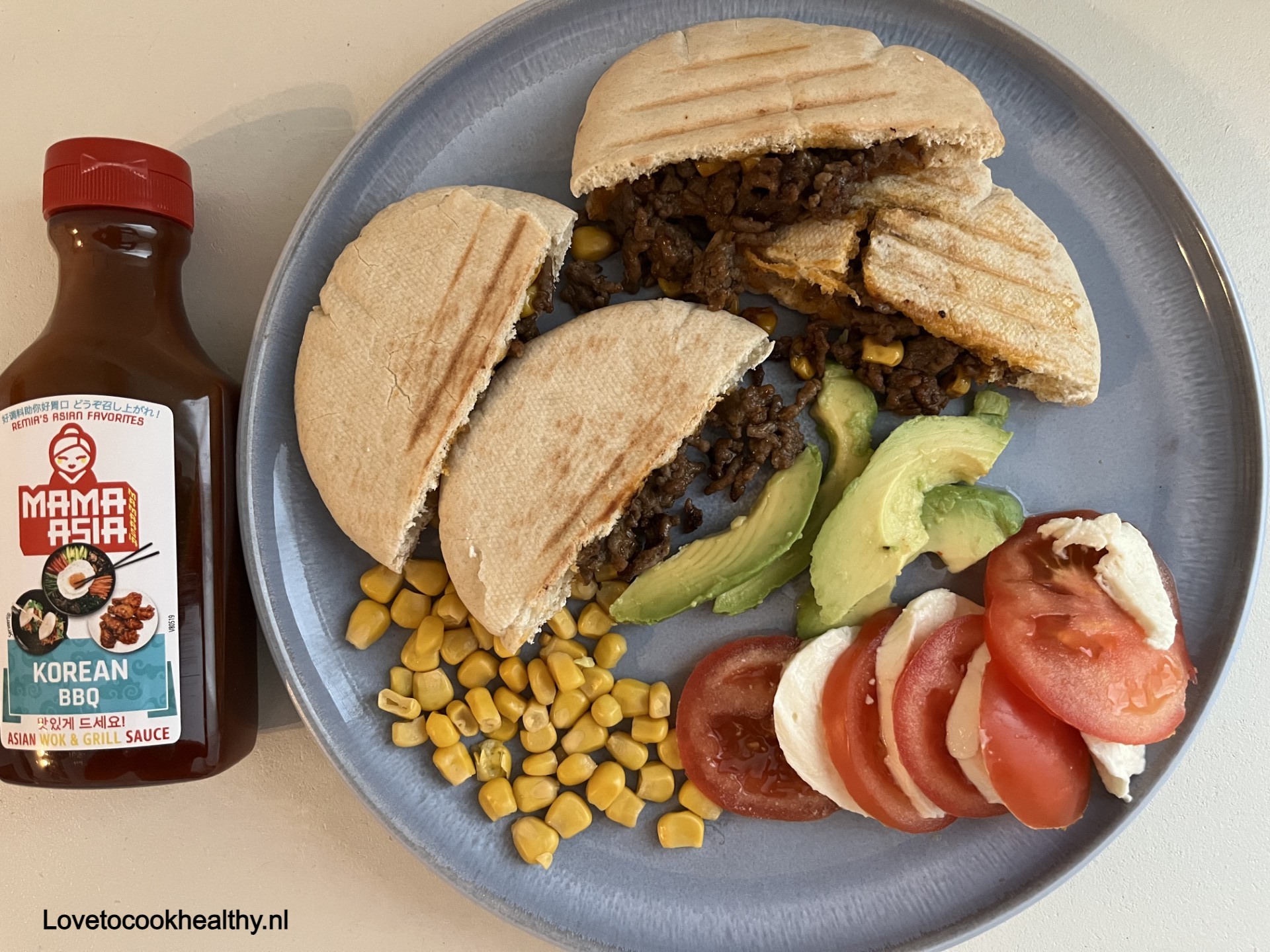 In de Foodybox Pasen van Kroon op het werk zat ook een fles Korean bbq saus van de Mama Asia lijn van Remia.* Deze pitabroodjes met korean bbq gehakt maak je makkelijk en snel klaar. Precies zoals je van me gewend bent.