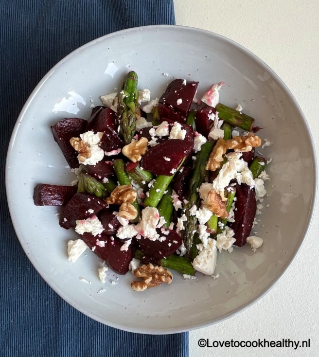5) Aspergesalade met rode bietjes, feta en walnoten