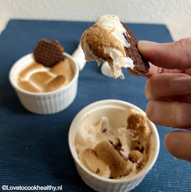 Ik koos er nu voor om de smores te dippen met mini stroopwafels brownie, maar je kunt ook kiezen voor een ander koekje, bijvoorbeeld een mariakoekje of lange vinger. Zolang het koekje maar niet te overheersend is. Lees je mee voor het recept?