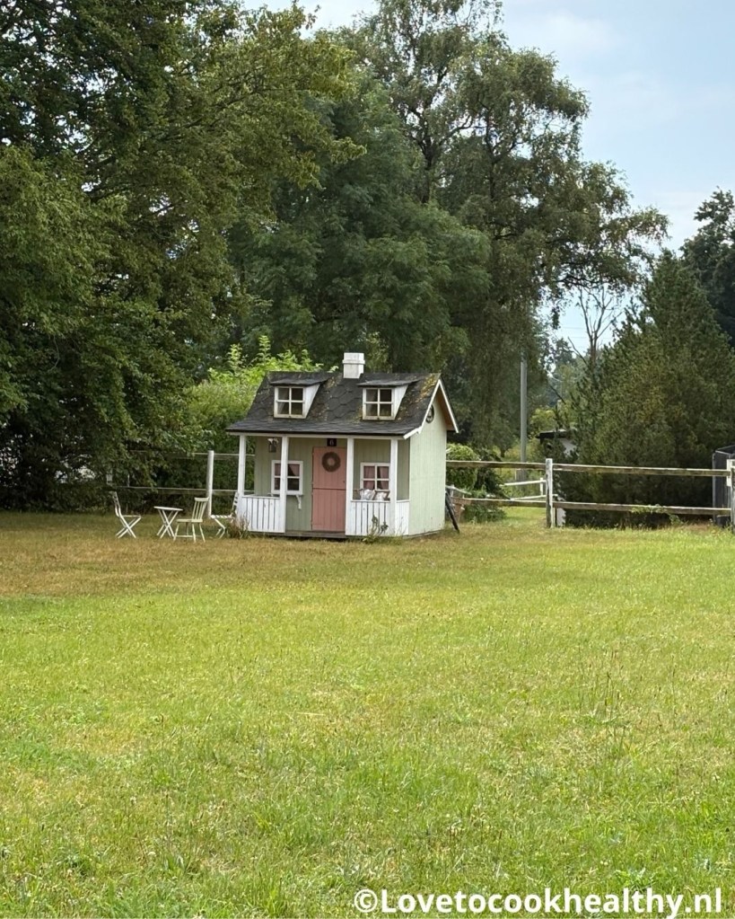 Het weer is ondertussen wat opgeklaard en Martijn gaat een stukje wandelen. Emily en ik ontdekken ondertussen de tuin en het speelhuisje dat daar staat. Als Martijn terugkomt, lopen we samen nog even naar een klein kerkje verderop. Daarna is het tijd om te lunchen.