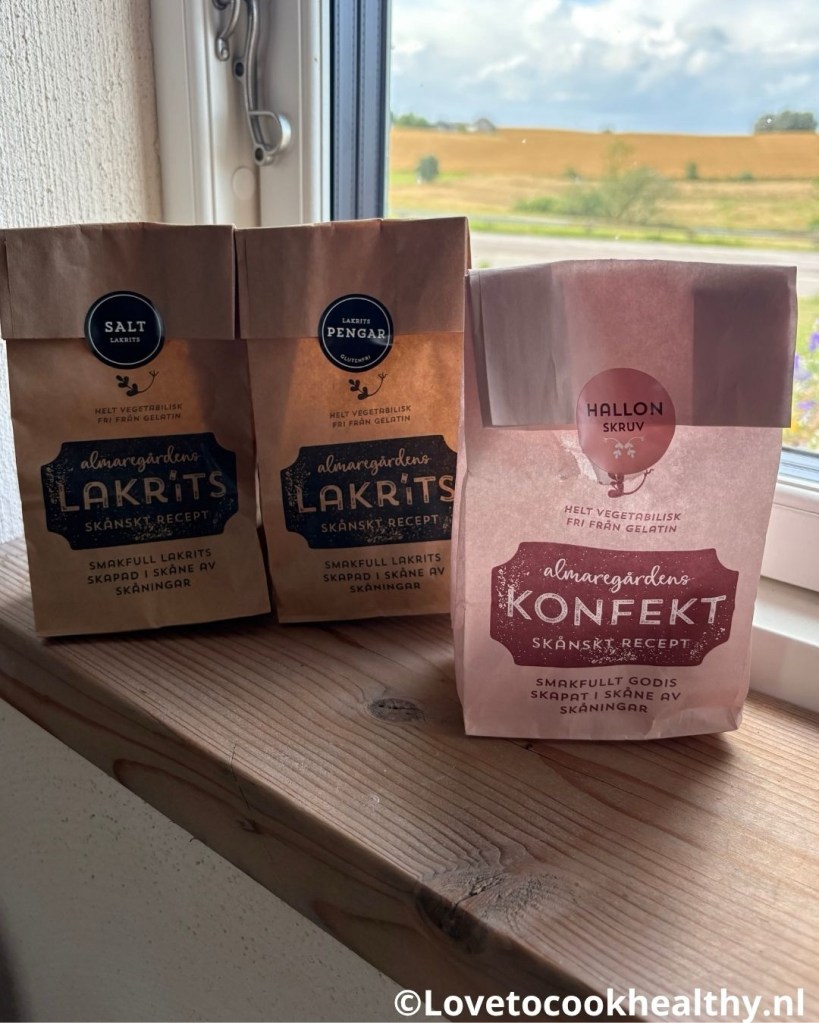 Als het uur bijna om is gaan we terug naar de auto. We gaan naar Almaregården, een tuin- en snuisterijenwinkel met een café en een leuk terras. Hier verkopen ze ook hun eigen gemaakte drop en allemaal lokale producten, planten, kaarsen, er is van alles wat.