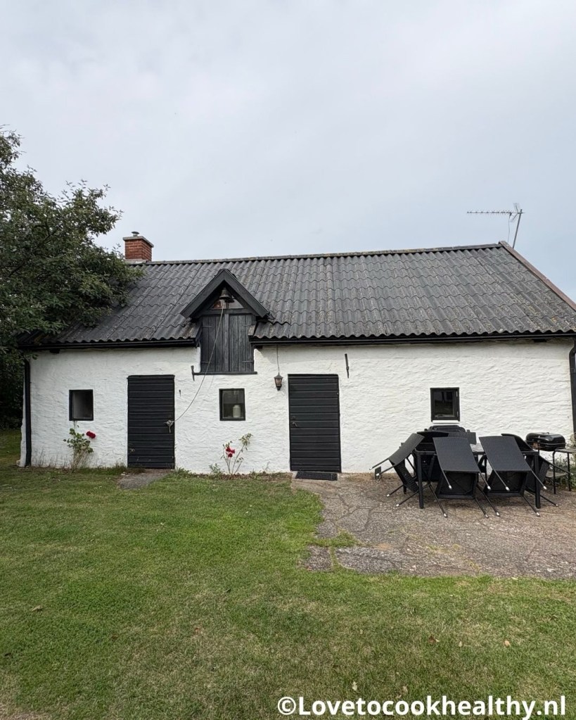 We komen om half 4 bij ons huisje aan en de zon begint zowaar te schijnen. We halen de auto leeg en geven alles een plekje en gaan dan boodschappen halen in Ystad. Ik maak in het huisje snel het avondeten klaar en niet kort daarna maken we Emily klaar voor bed. Om half 8 slaapt ze en plof ik neer met een kop thee. Ik kijk uit op het weiland en zie af en toe een hert met jong in de verte door het weiland lopen. Wat een rust hier!