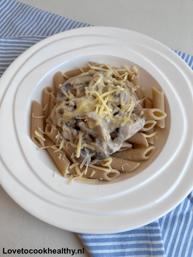 3. Pasta met kip en champignons in roomsaus