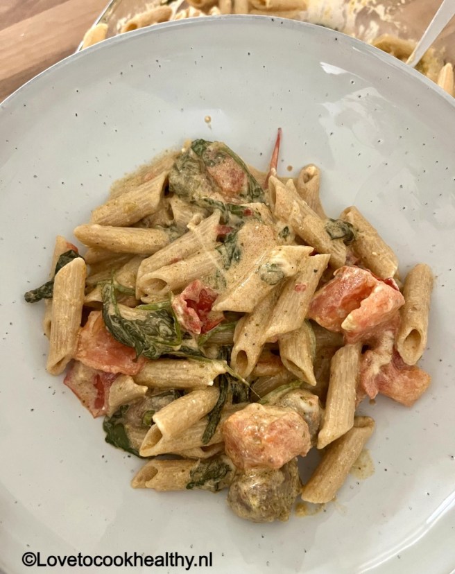 2. Romige pasta met spinazie en tomaten