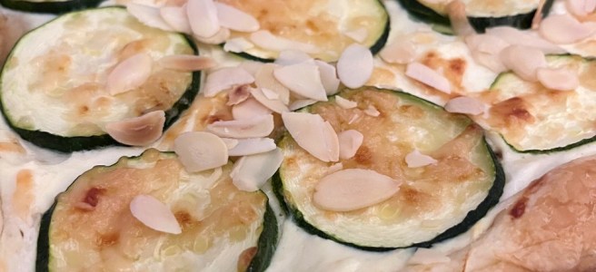 Plaattaart met kastanjechampignons en kruidenroomkaas