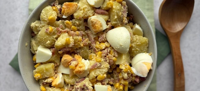 Aardappelsalade met hoemoes